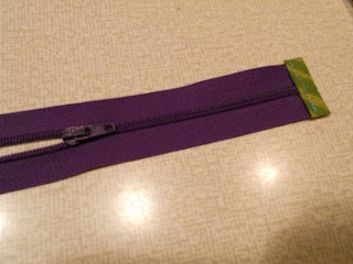 6) Nu ska dragkedjan på plats. Jag använder tape för att fästa dragkedjan. Tråckla eller nåla går också bra.